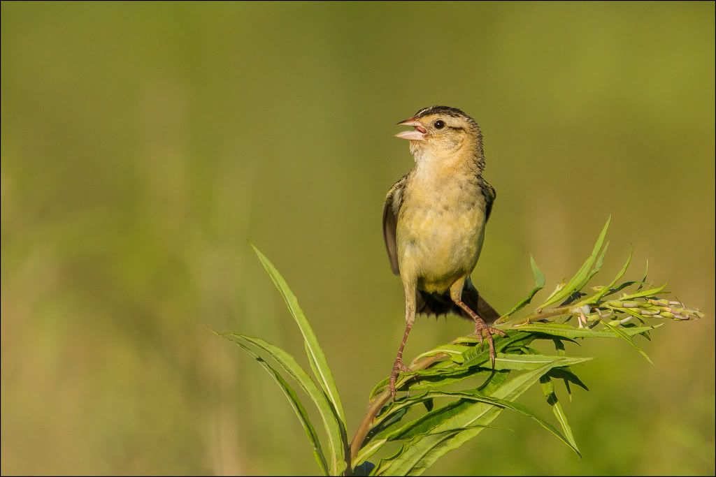 I heard the wonderful sound of the bobolink yesterday and I had to give chase. I sat in the farmers field waiting patiently for the female to approach me. Finally, she did and I was able to snap a few. Here is one of my favorites.