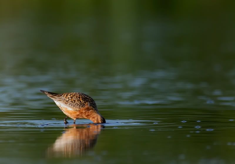 Today I was trying to crawl near some Curlew sandpipers. It was hard... An open area with a small pond. Me, my camouflage mask and my 300 with 1.7 tc went out in the very early morning, before the birdwatchers was out.. Tried to get as near as possible and also wanted the bird out a bit in the water so I did not get a blurry fg and a half mirror of the bird...