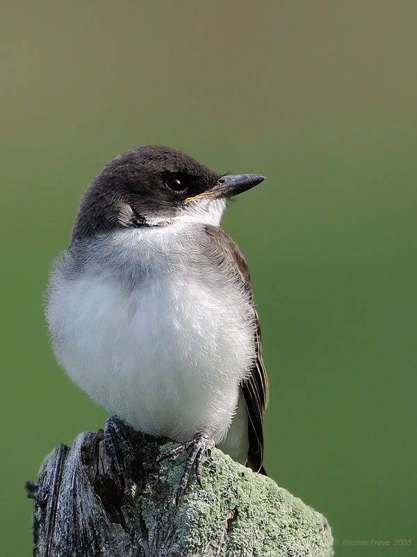 Bonjour Nicolas. The head angle is not ideal, and the crop is a bit tight. I do love the gradient BG, and the nicely weathered perch looks good too. I like it when the young ones still show the yellow base on the bill :-)