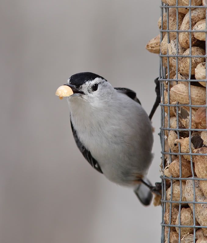 Well, at 1.400 you really didn't have to much room to spare for DOF unless you increased your ISO to 400 or 500, not too good a thing for the 50D. The composition looks fine to me, the peanuts are on a rule of thirds placement, I'd only have put the bird a little higher up.