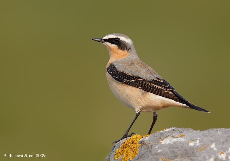 Before I left the office last night, I checked the local bird reports which showed 5 northern wheatear had been sighted on the coast close to home. So I decided to make a quick detour on the commute home to see if I could get a photo or two. The wheatear often stop briefly along the local coast as they make their way north on their migration up from Africa and look particularly good at this time of year in their fresh spring feathers. They have a frustrating habitat of when you get within about 30 yards they will then fly off and land another about 60 yards away in front of you. Anyway a couple of them landed on the rocks that make up the sea wall which gave me a bit of cover to managed to sneak up on one.