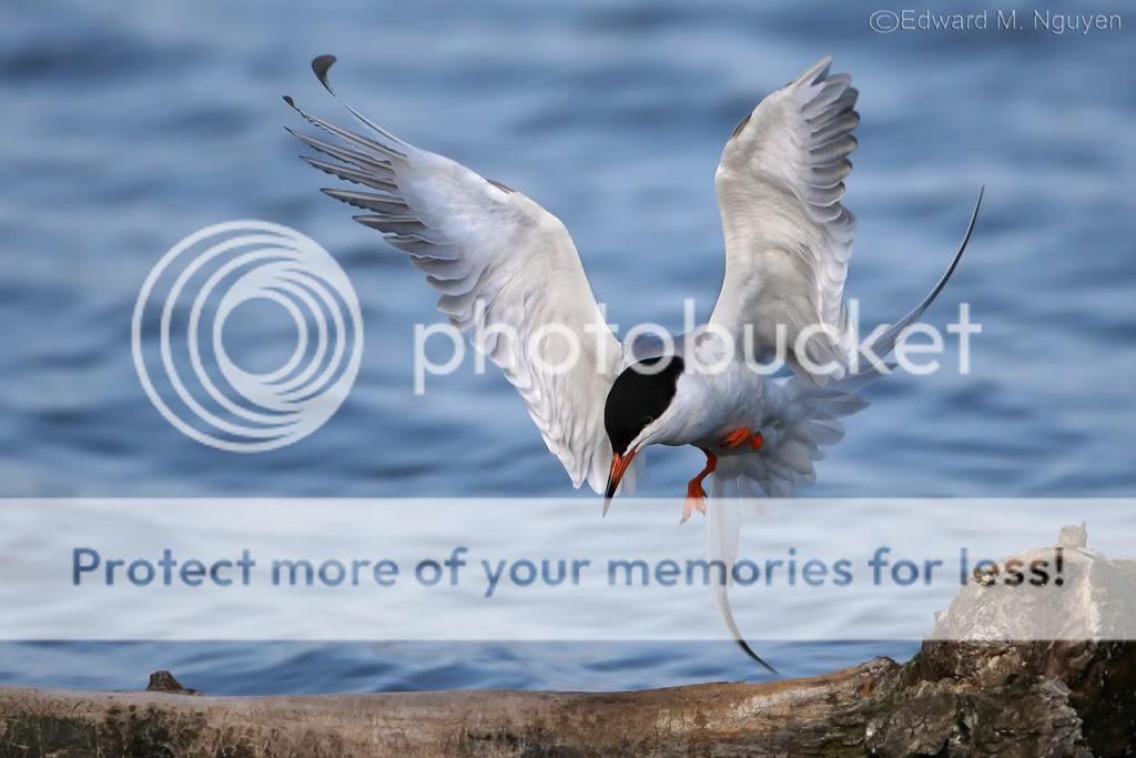 Excellent job controlling the white, though I think the image is a little dark, man you really maxed out the shutter speed on this one? The tern position is very uinque. I would clone out the two small pieces of rock/wood that stick out from the main body.