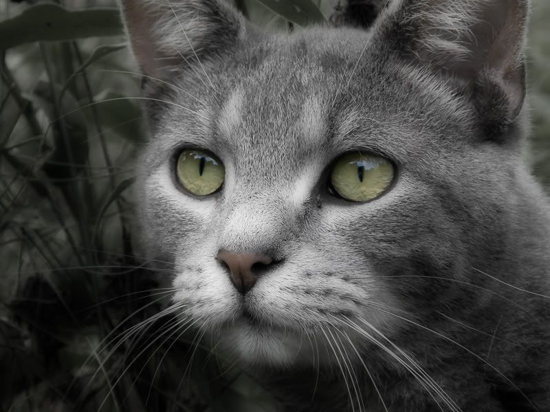 Meet Silver, another one of our cats. He's the brother of Socks, the cat in the last picture I posted. I did quite a lot of PP work on this including selective desaturation and the orton effect. The original shot is posted below.
