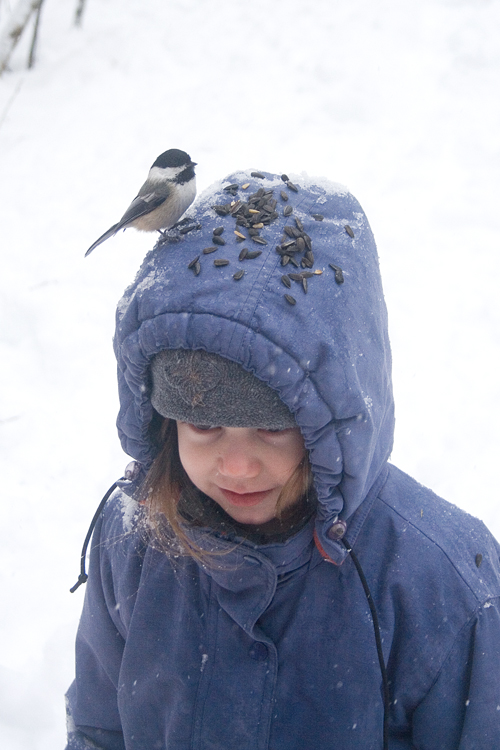This is Elisabeth, next oldest after Mike. Here she is feeding the birds at a Conservation Area near our place.