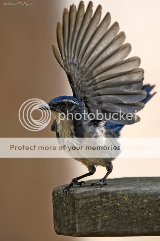What a great pose with the wings, spread! I'm sure you did not have any extra room at the top to work with, that would have been nice. Like you say, no time to really make adjustments, just fire and hope you get something, which you did! Very nice.