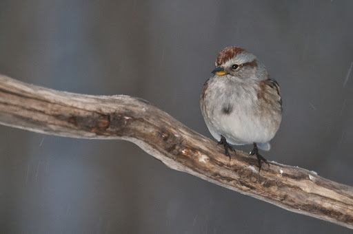 This is a sweet image. I like the composition, your little guy is placed just right in frame. You have a good head angle and good eye contact. I like the diffused background with the snow. The image does look a little flat. perhaps a saturation and contrast boost would do...Mr. Peters' repost puts it over the top...:cool: