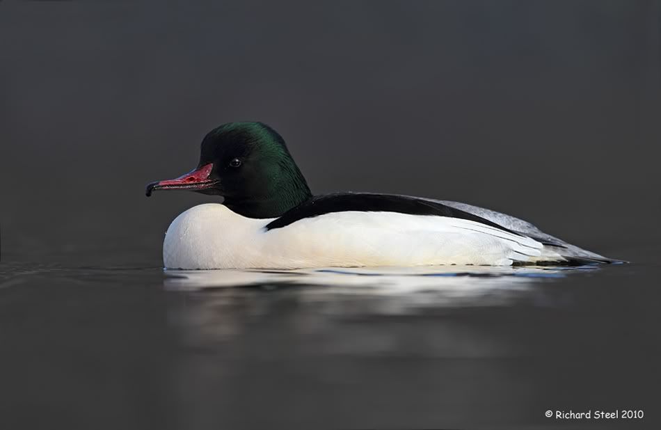 My mkIV arrived this week but th weather has been grim, so it headed forth on its first outing this morning. I decided to head up to a site where I photograph goosander. It was thick fog for the 90 minute drive but fortunately the lake is elevated and was above the fog layer, in sunshine and flat calm. These male birds are a real exposure headache!. Anyway the mkIV performed very well and bascially does what it says on the box :),the only current downside being I only have DPP to process the images with, which I never use, as my favourite Caputre One has not come forth with an update yet.