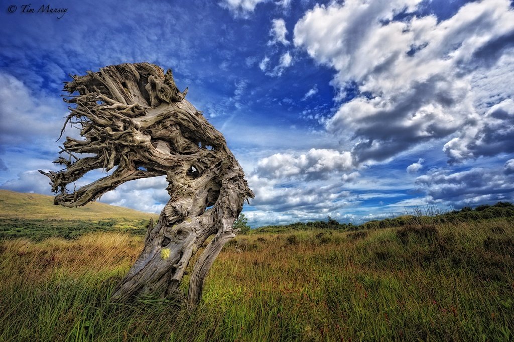 You worked the composition well. Using the wide-angle you exaggerated the perspective of the tree and the sky. I like how the left leaning tree is balanced with the right leaning clouds.