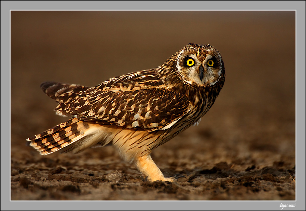 Tejas, Welcome! and Congratulations on a super first post. One of these owls visits a field not to far from me but never appears until just as it gets too dark to capture - so I'm envious of your success. Face is nice and sharp (although I agree with Daniel that even lighting might have improved it a bit). There seems to be a little motion blur in other places - tech info would be useful. Still, a really nice capture.