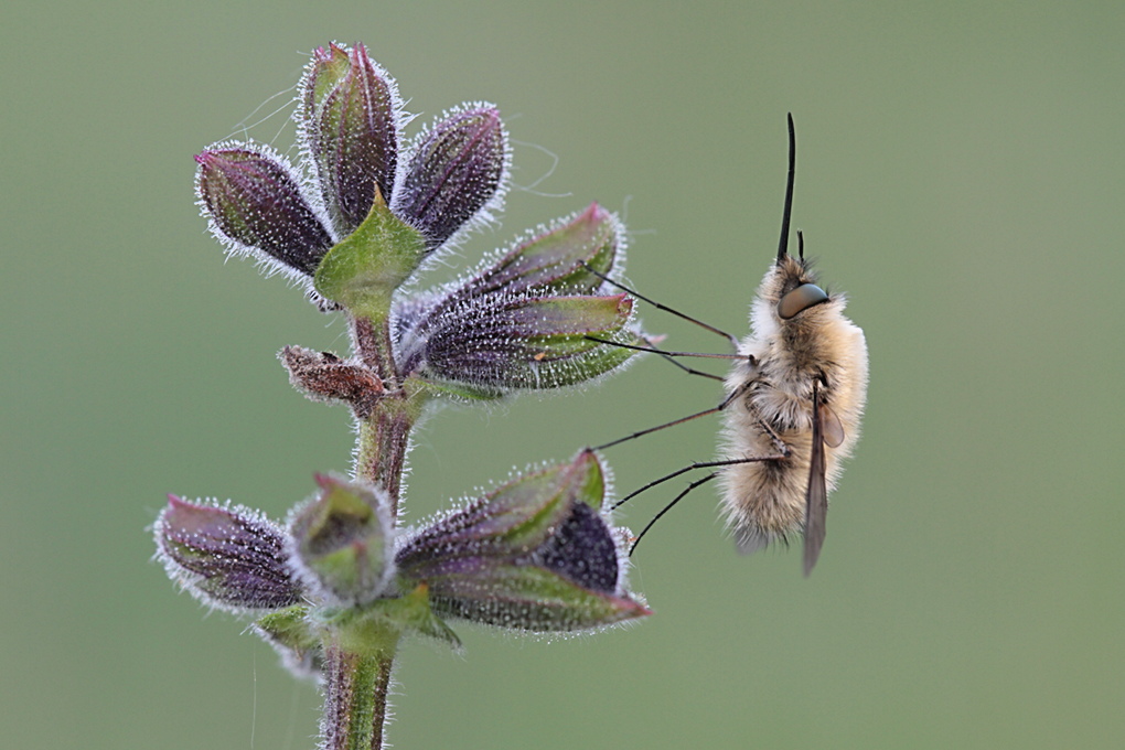 Bee Fly resting on sage, Halsberg between Gilsdorf and Harzheim, Eifel, Germany. Canon 100mm f/2.8L IS USM @ f/9, 1/60, tripod.